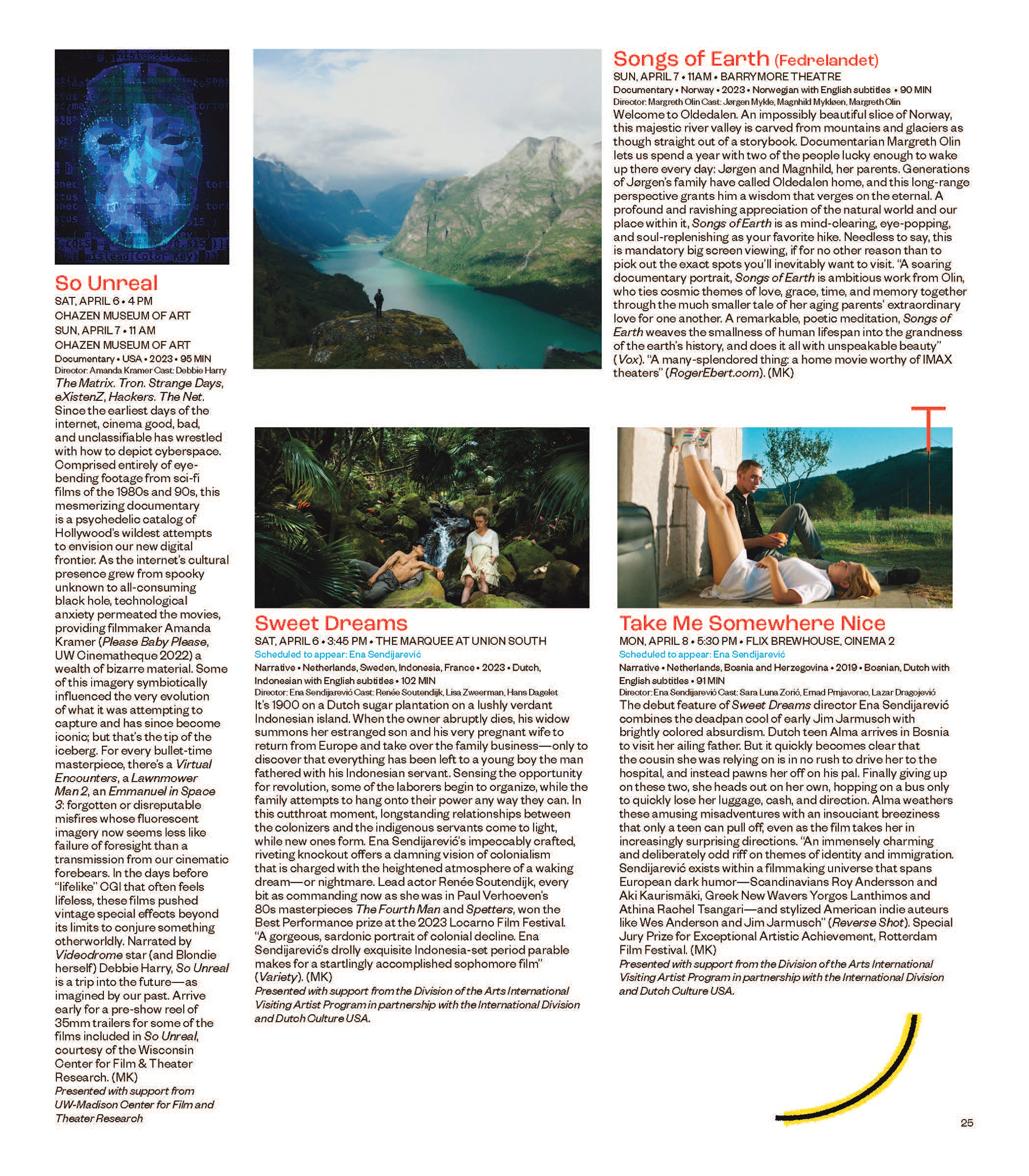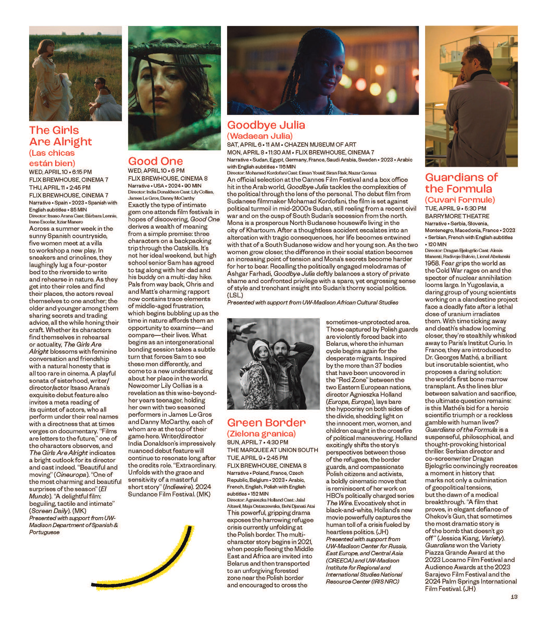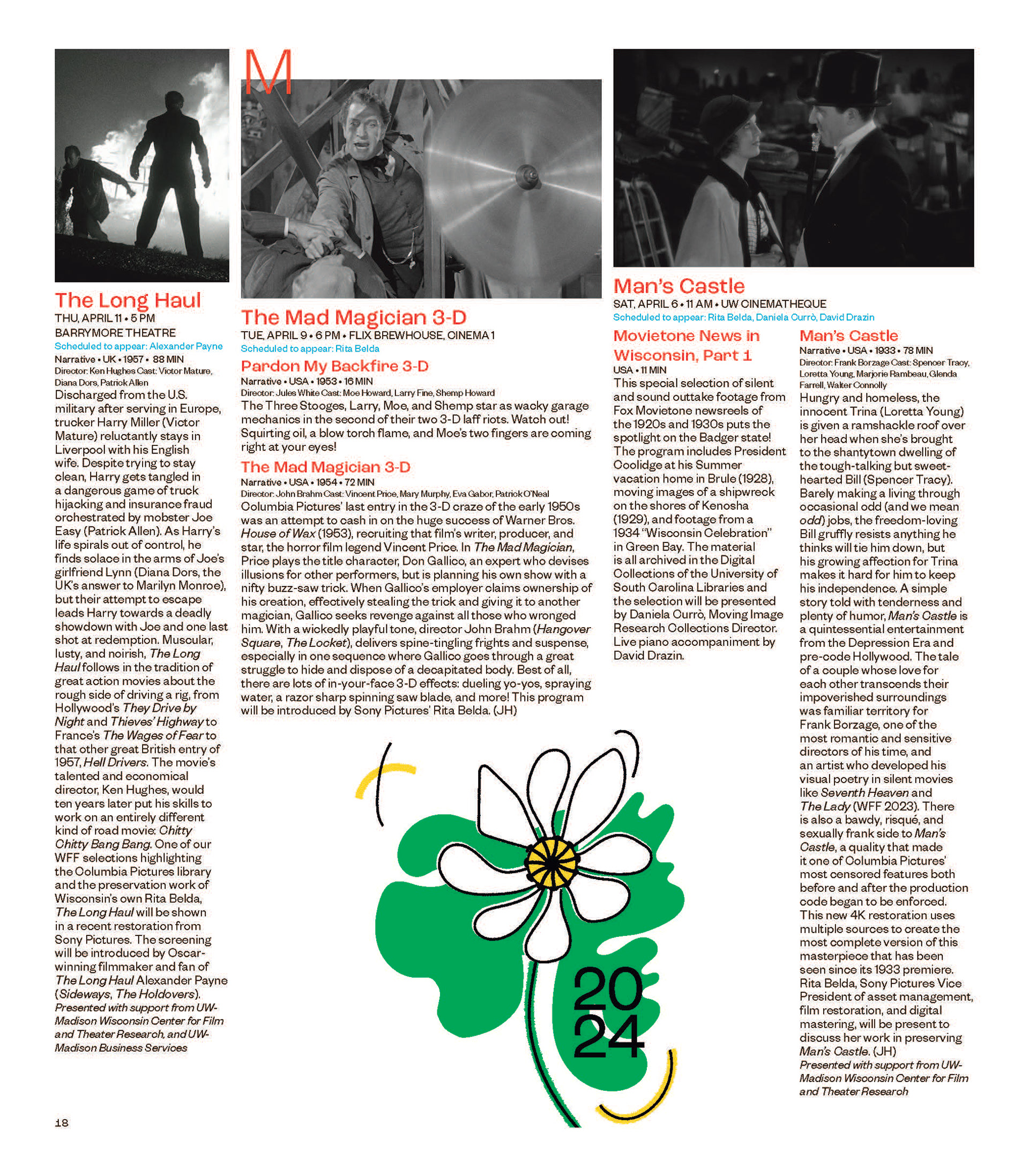 I have been working as a seasonal Junior Graphic and Layout Designer along side Christina King for the annual Wisconsin Film Festival. I started working with them in the spring of 2024, originally only doing layout design for the Film Guide. In 2025, I got to do even more, including promotional materials, flyers, Instagram ads, creating templates to promote businesses, sponsors and movies, and much more! Each year, they come to me with the color palette and theme pretty much set, which means I am required to design unique materials within those perimeters.