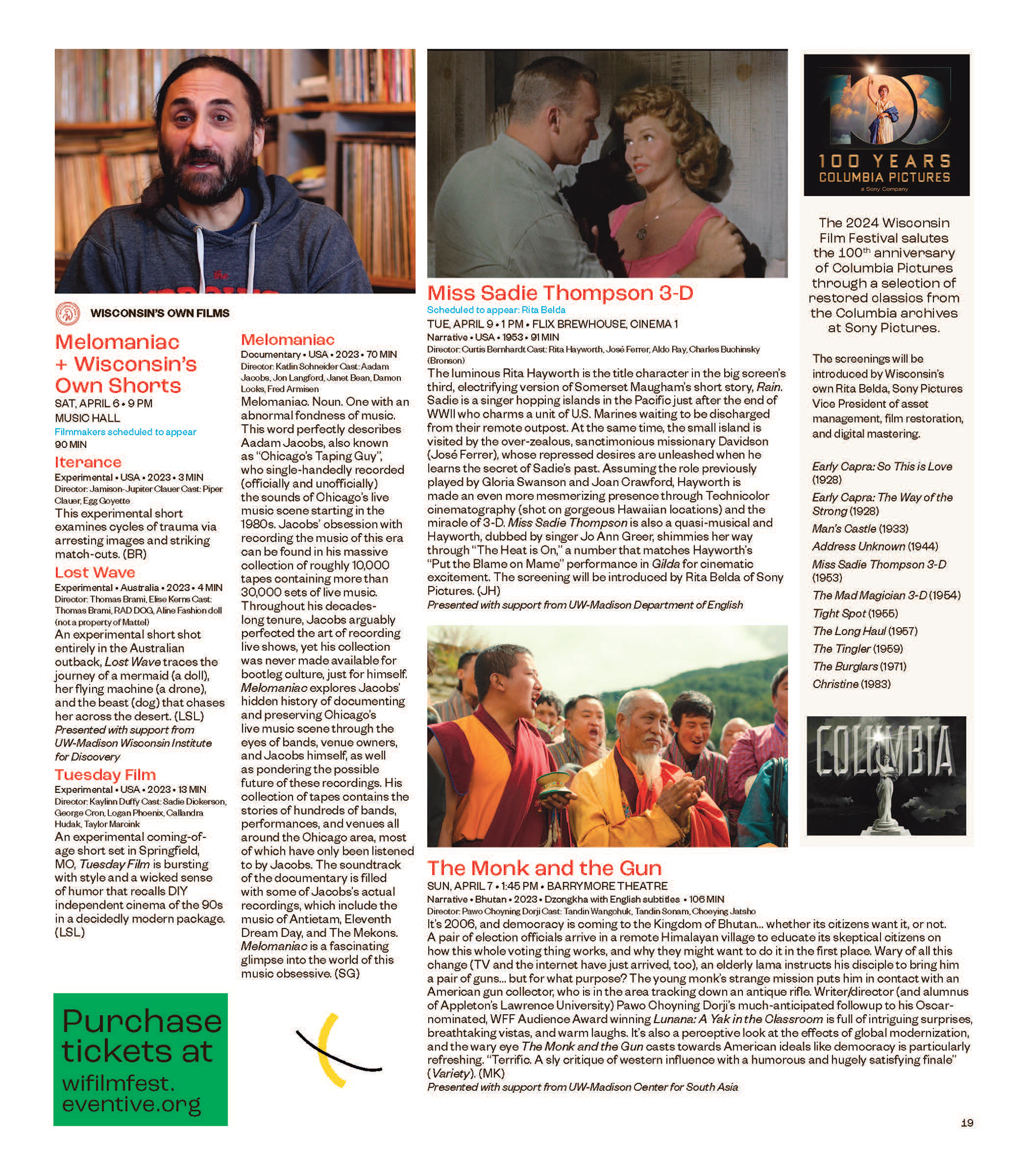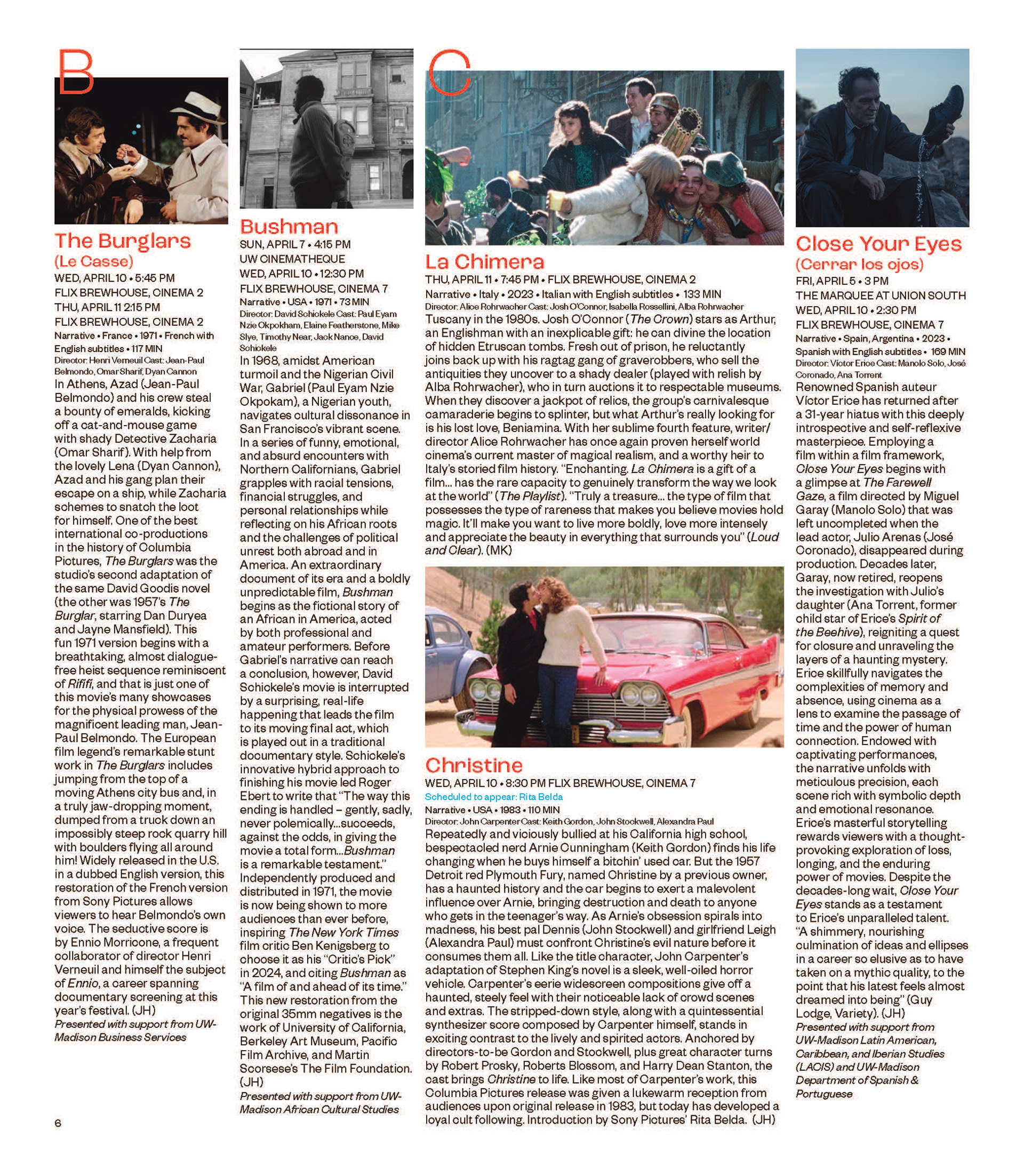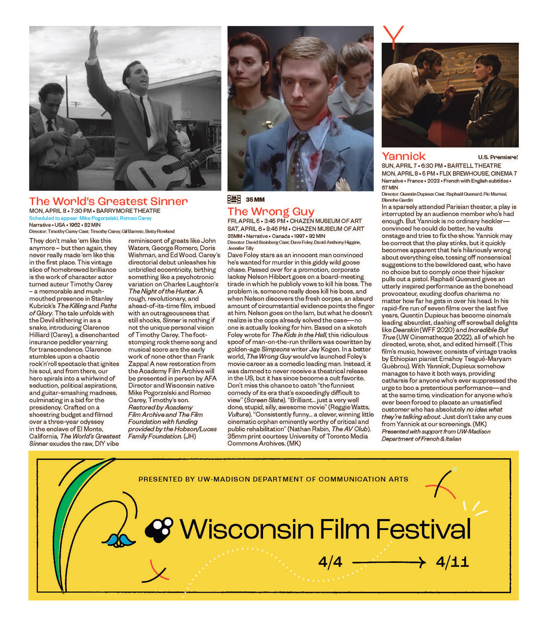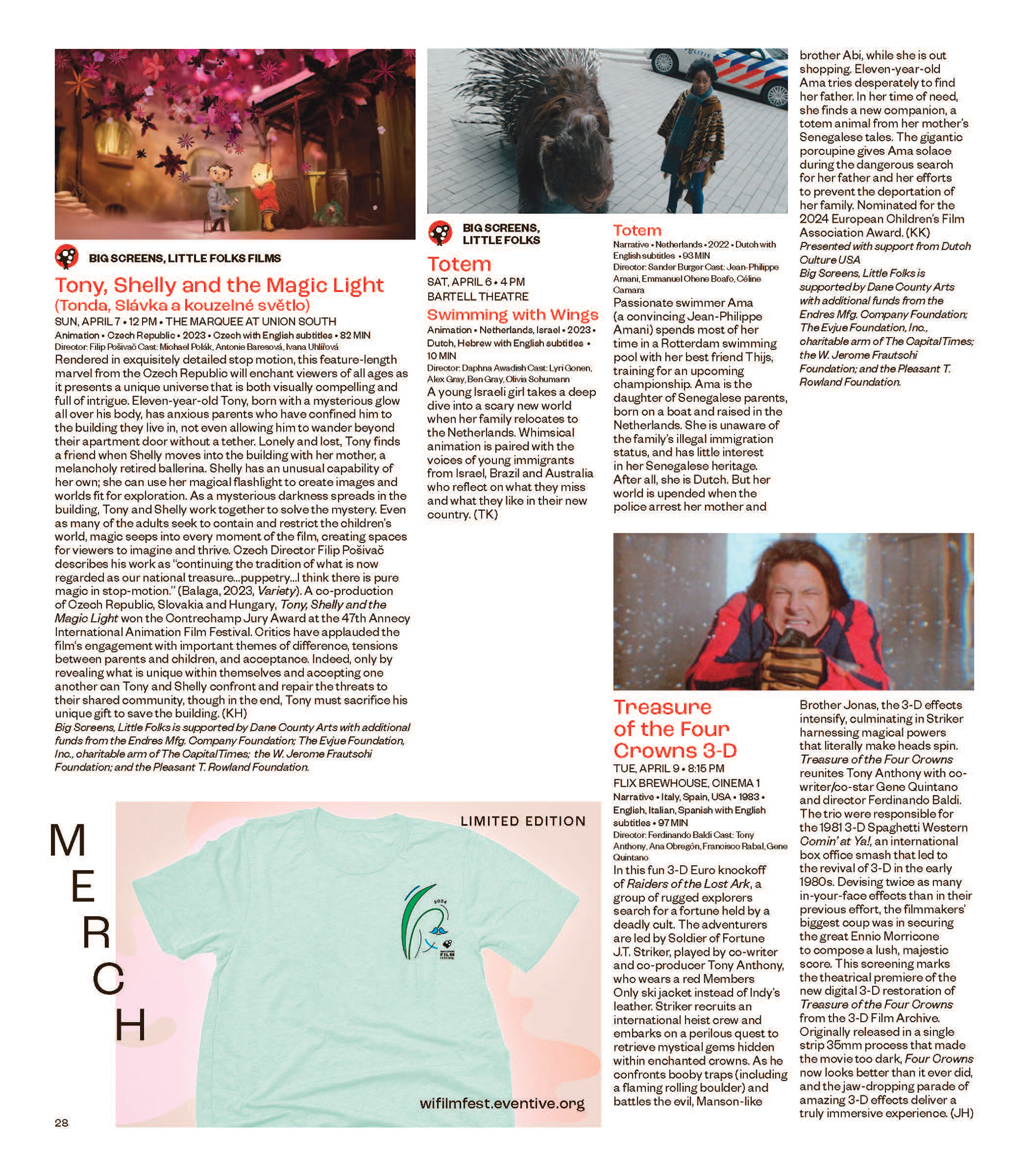 I have been working as a seasonal Junior Graphic and Layout Designer along side Christina King for the annual Wisconsin Film Festival. I started working with them in the spring of 2024, originally only doing layout design for the Film Guide. In 2025, I got to do even more, including promotional materials, flyers, Instagram ads, creating templates to promote businesses, sponsors and movies, and much more! Each year, they come to me with the color palette and theme pretty much set, which means I am required to design unique materials within those perimeters.