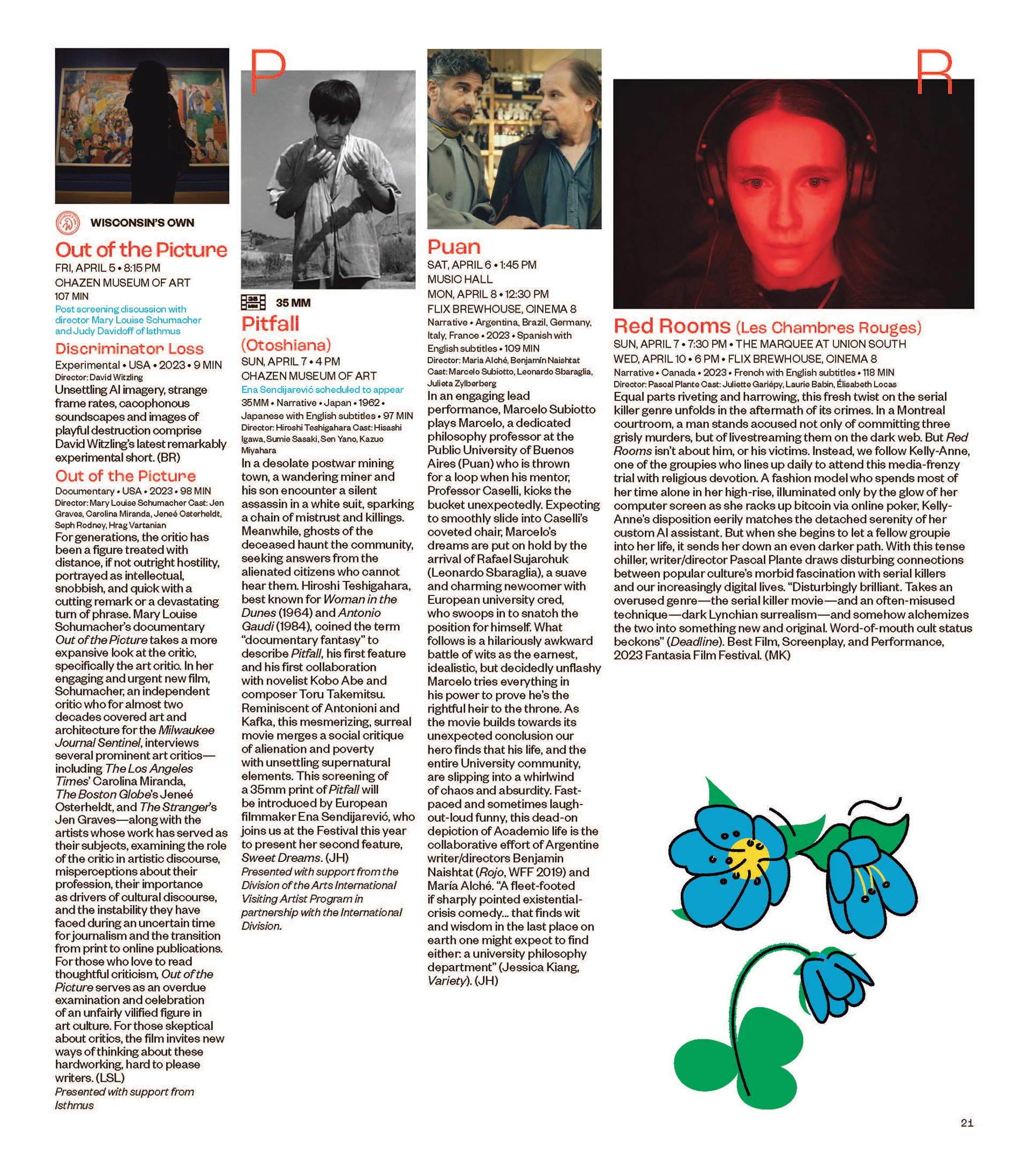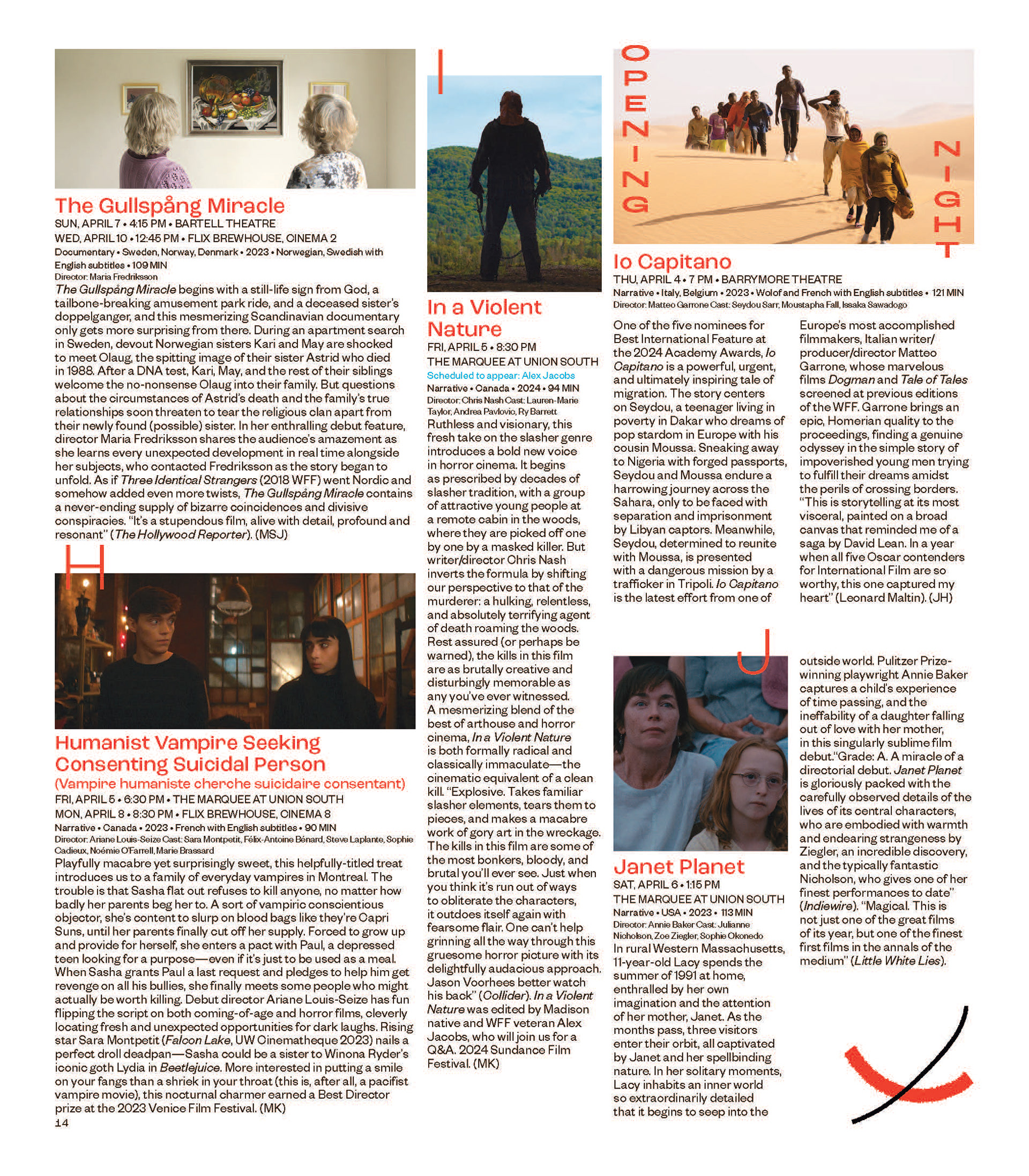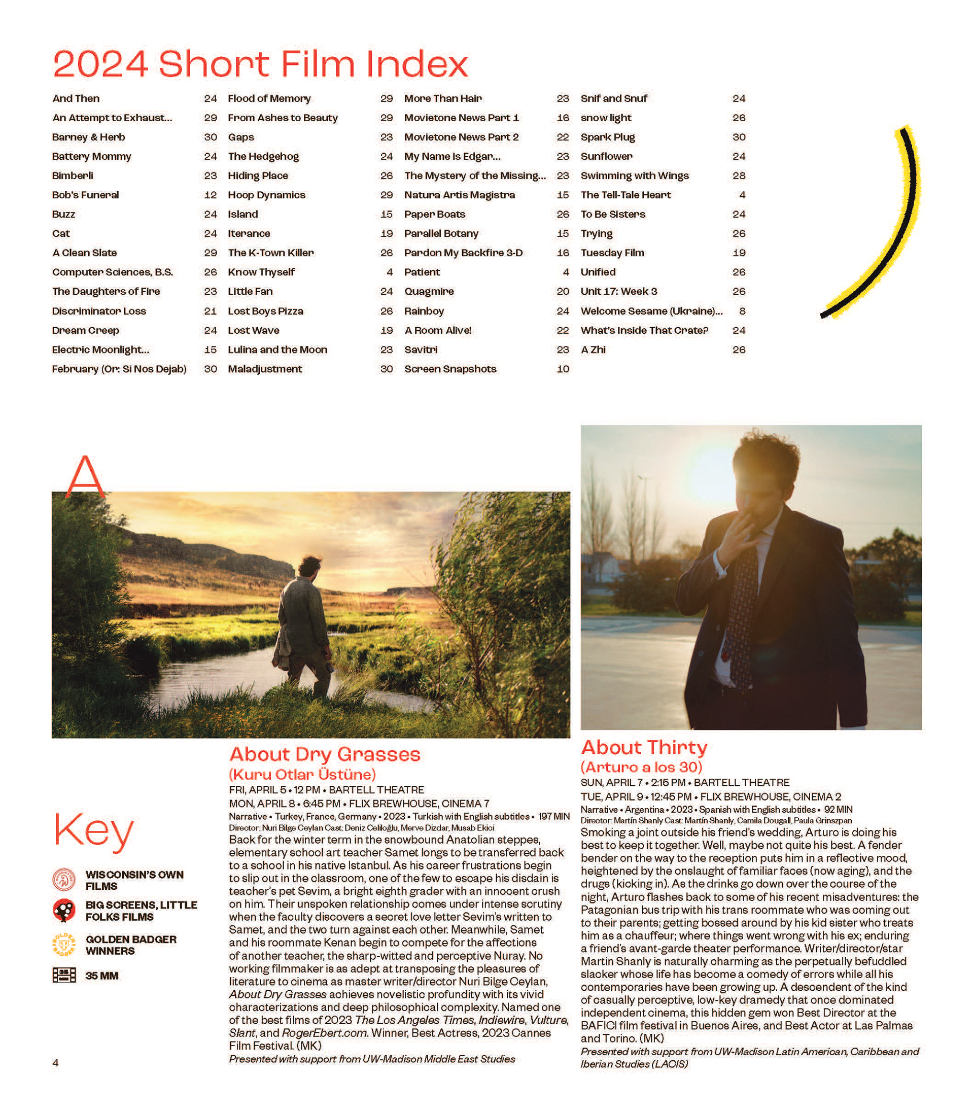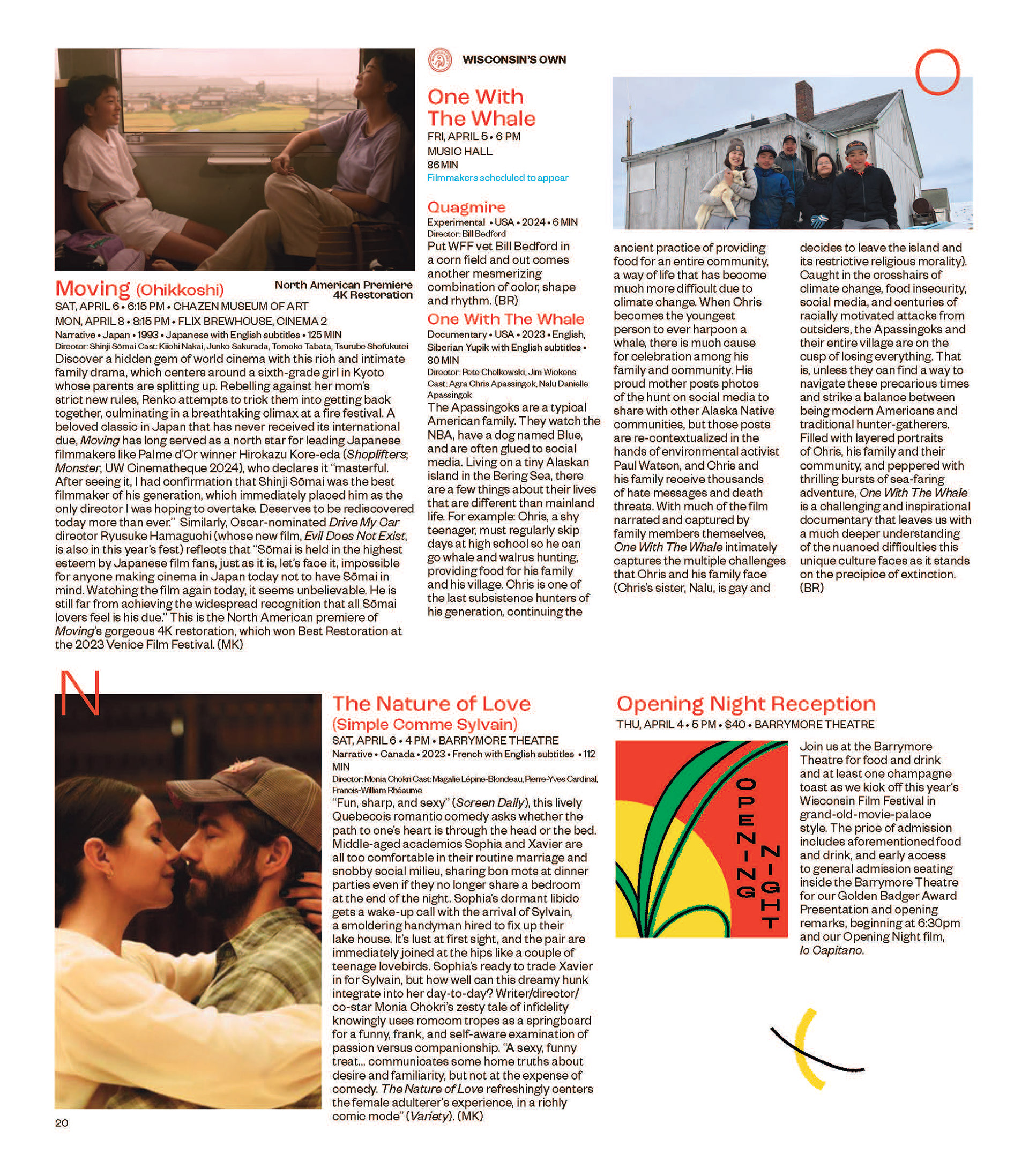 I assisted in the layout design for the Wisconsin Film Festival Guide, which also included the front cover, the index page, the about/info page, and the tickets page.